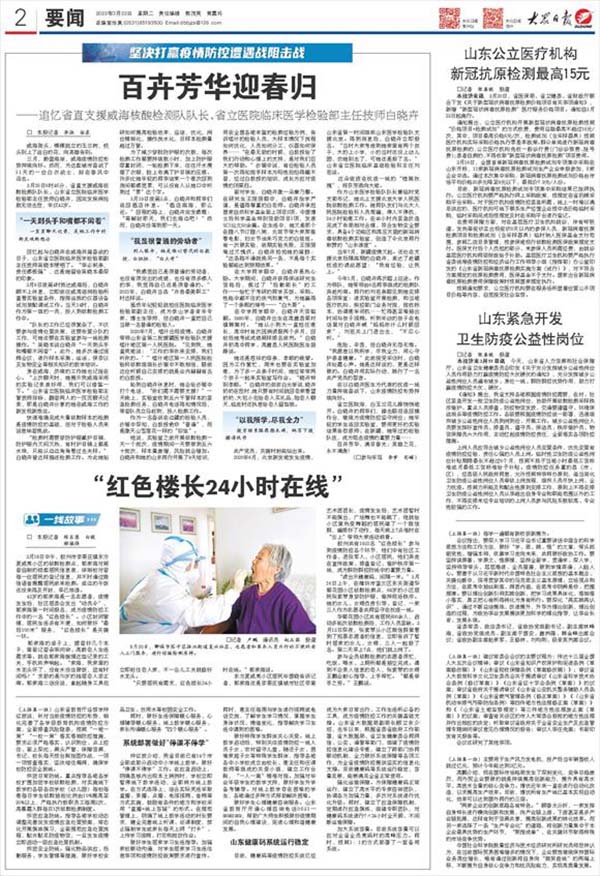 在以白晓卉医生为代表的抗疫一线力量持续奋战下,山东疫情防控形势持续向好。