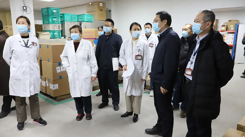 肖伟副院长仔细查看了医院储备的防疫物资、药品的品类、库存,详细询问了储备计划、调拨流程、保障供应等情况,并现场查看了仓库消防设施安全、消防人员配备等。