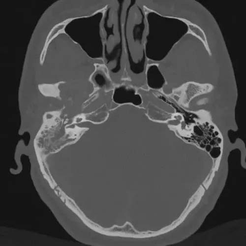 这例肿瘤位于全身结构最复杂区域之一——侧颅底,虽然医生可通过手术完成侧颅底区域的手术,但随着肿瘤体积增大,许多耳部的重要结构却无法保留,如面神经(损伤后引起面瘫)、位听神经(损失后引起听力下降、眩晕、耳鸣)、9-12对颅神经导致声音嘶哑、伸舌偏转、吞咽困难等。选择最佳手术路径,减少并发症发生,保证病人利益最大化是医师们的共同期望。
