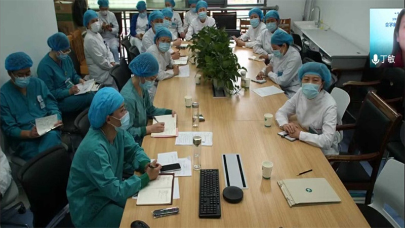 按照护理部统筹安排,中心院区危重症护理组组织相关人员进行远程会诊。会诊由危重症护理组顾问、重症医学一科护士长丁敏主持,神经外科护士长张丽,创伤骨科护士长宋玉芝,重症三科护士长、营养护理组组长韩瑜,呼吸治疗护士李宝宝,以及在青海海北执行医疗帮扶任务的危重症护理组组长、心外ICU护士长郑静全程在线参加会诊。