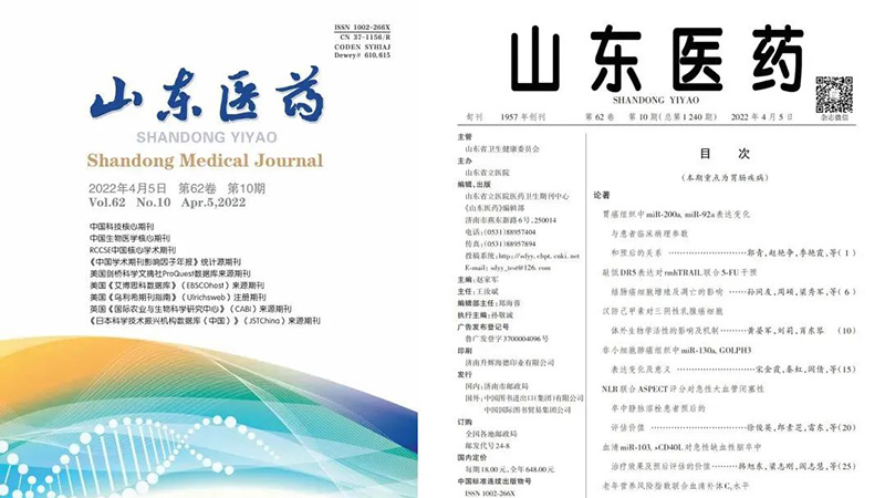 2、诚征优秀论文。本刊设置论著、基础研究、临床研究、综述等栏目,专题策划12期“重点号”。热诚欢迎广大医学专家学者投稿,特别是国家级、省部级、地市级基金项目成果论文。有意投稿者,请登录山东医药投审稿系统https://sdyy.cbpt.cnki.net投稿。