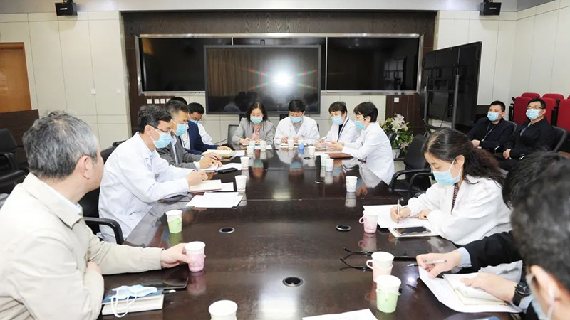 孙志坚一行先到磐石宾馆进行现场调研,总务部、医学工程管理办公室就健康管理中心磐石宾馆项目的改造规划、施工进度、设备购置情况进行了现场汇报。在保健楼会诊中心会议室,各部门听取了管理英作的健康管理中心工作汇报,并根据各自分工逐项汇报了解决方案和实际困难。