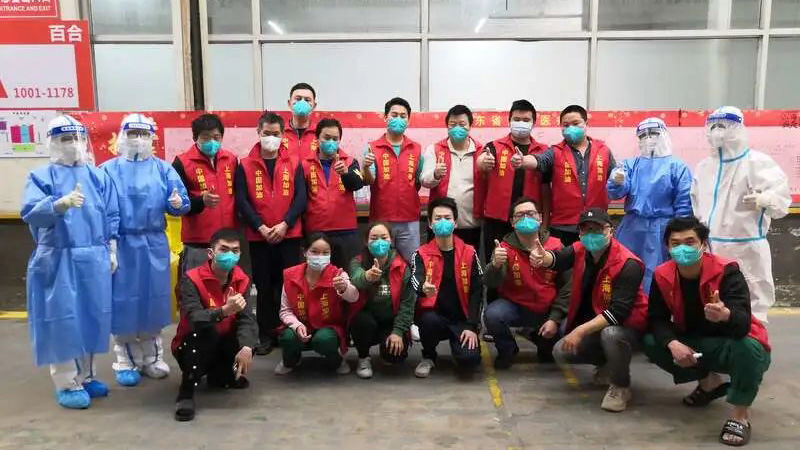 山东省援沪医疗队部分队员与志愿者团队部分成员合影。(图片由山东省援沪医疗队提供)