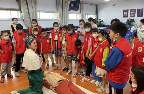 色彩艳丽的玩具、五彩缤纷的气球、神秘小礼物,活动在孩子们的欢声笑语中拉开了帷幕。口腔科护士王青梅带来了《爱护牙齿 · 绽放微笑》口腔健康知识讲座,就如何正确涮牙、保持口腔健康方法及重要性进行讲解与示范。眼科护士倪雪通过猜谜语的方式调动起孩子们的积极性,激发他们的想象力,以《科学用眼 “睛”彩无限》为题,讲解了实用的科学用眼健康知识,在科学用眼歌谣中结束,给大家留下了深刻的印象。急诊留观室护士于梦晴带来了《小小救护员——救护知识培训》,技能实操环节,孩子们踊跃参与练习,初步掌握了心肺复苏简单的理论知识及操作要领。