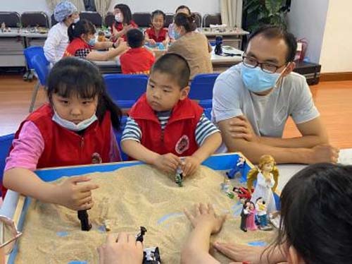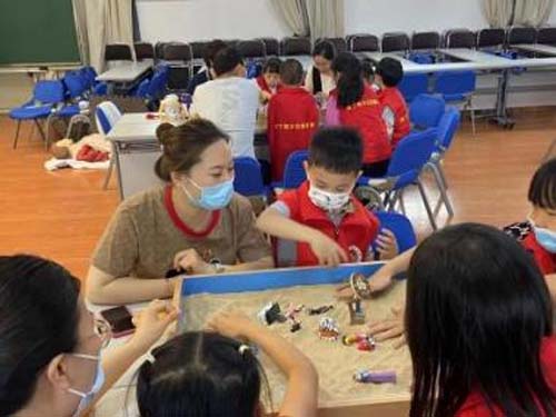 郑晓丽科护士长带领家长和孩子们进行“七彩童年”亲子沙盘活动,增进了家长和孩子彼此之间的沟通与了解,促进了和谐的亲子关系。