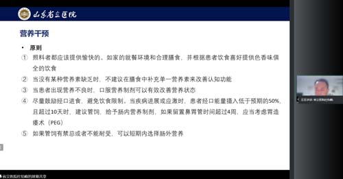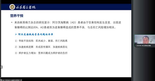 在先期开展口腔、重症、胃肠外、儿外科专业活动的基础上,本期活动聚焦神经内科、泌尿外科疾病的相关临床营养问题进行多学科交流。省立医院神经内科杜怡峰教授、泌尿外科张琦教授、临床营养科冯丽教授分别围绕“阿尔兹海默病的发病机制与诊疗现状”“营养状况及营养干预对肾癌患者预后的影响”、“阿尔兹海默病的营养需求”开展专题讲座。在讨论环节,与会嘉宾就阿尔兹海默患者的营养支持和生酮疗法进行了热烈的讨论。