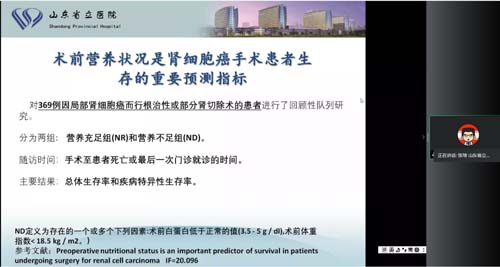 为贯彻落实《国民营养计划(2017-2030年)》,推动临床营养学科建设,提升临床营养医疗水平和质量安全。6月6日,由山东省医师协会临床营养医师分会主办,山东第一医科大学附属省立医院(山东省立医院)临床营养科承办的临床营养线上MDT系列活动第三期成功举办。山东省医师协会临床营养医师分会主任委员李涛教授作为大会主席,进行了开场介绍。山东省医师协会副会长兼秘书长宋良贞参加活动并致辞。