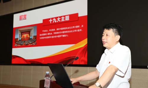 李乐平从“我们党的初心和使命是什么”,“为什么要不忘初心牢记使命”,“怎样才能牢记初心不辱使命”,“做不忘初心牢记使命的合格共产党员”等四个方面展开,在理论维度、历史维度和实践维度的统一中深刻阐释了中国共产党的初心和使命。