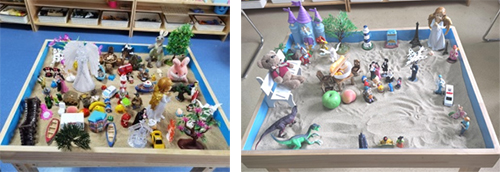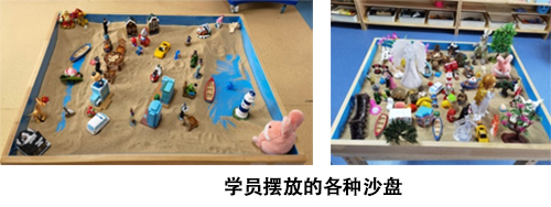 学习初期以减压为主。学员们通过对沙具、沙盘命名及讲解,倾诉了自己当下的压力、困境与感受,交流了解决当前问题的方法和途径,疏解了情绪与压力。