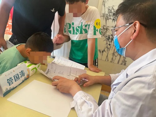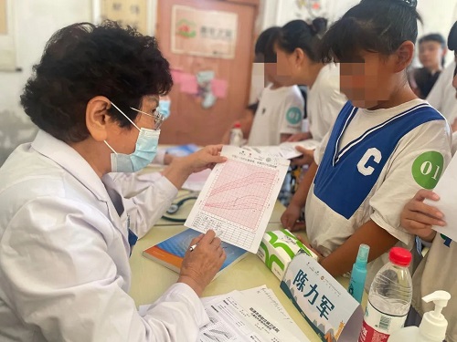 在严格落实疫情防控措施的前提下,小儿血液内分泌科10余名医护人员组成的义诊团队与孩子们进行互动交流,详细询问每名儿童生长发育营养情况,进行全面的体格检查,为每名儿童建立了健康档案,并有针对性进行卫生健康指导,提供了详细的诊疗建议。