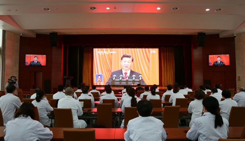 我院参会人员认真收看党的二十大实况直播,聆听习近平总书记所作的报告。全院党员职工深受鼓舞,倍感振奋。大家一致表示,要深入学习贯彻党的二十大精神,紧紧锚定“走在前,开新局”的目标要求,以更加强大的前进动力、更加昂扬的奋斗精神、更加坚定的必胜信念,全面开创医院高质量发展新局面,为新时代社会主义现代化强省建设,为应用研究型一流大学建设作出新的更大贡献。