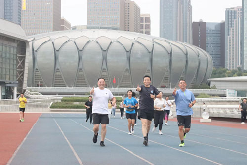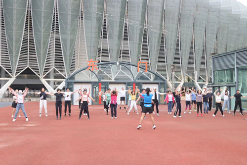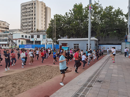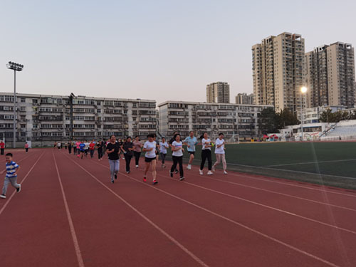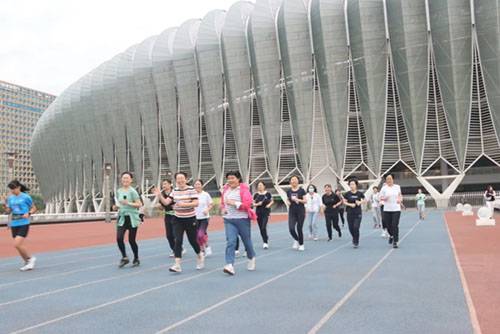 傍晚时分,大家结束一天忙碌的工作,齐聚运动场。李云和周金娥带领大家进行简单的热身运动,并讲解跑步的各项技巧及注意事项。起跑后,壮观的队伍顿时成了运动场上一道靓丽的风景,引来周围健身者的称赞。跑步结束后,李云和周金娥带领大家做肌肉拉伸等训练的同时,向大家介绍运动的初衷,并提醒大家练习不要急于求成,重在坚持,这个过程既可以增强体质又能陶冶身心。