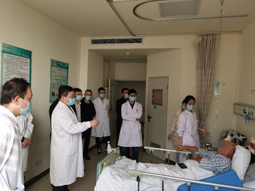交流活动中,杨珂一行参加了医院东院泌尿微创一科的早交班及晨会学习。医院东院泌尿微创一科主任蒋绍博带领科室人员进行科室大查房,就肾上腺源性高血压等相关患者的病例查房及管理等内容进行重点讲解。蒋绍博以《高血压外科学科建设》为题,为来访团队做了专题介绍及学术交流,介绍了科室患者管理、治疗、随访等工作。