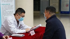 在东院区门诊大厅一楼,刘东兴、胡波副主任医师、季宪飞副主任医师、张科副主任医师、任金林副主任医师等与患者及家属进行病情交流,开展用药指导,宣传普及心梗识别与救治知识。