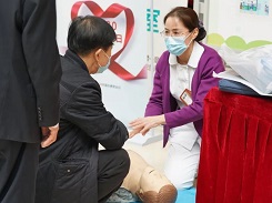 门急诊科总护士长张振美为患者测量血压,进行日常保健、慢病防治、胸痛知识宣教。韩玉萍护士长现场带领护士团队对患者及家属开展自救、互救、急救知识与技能培训,通过手把手现场指导教学、患者及家属动手模拟体验,提高了群众对心肌梗塞的认知能力,使更多群众能够掌握基本的心肺复苏术急救知识与技能,让更多群众“懂急救、会急救、敢急救”。
