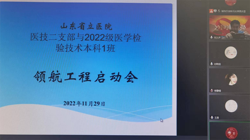 为充分发挥基层党支部在加强学生思想政治教育中的带动作用,11月29日,按照校(院)和医院工作安排,山东第一医科大学附属省立医院(山东省立医院)医技二支部和校(院)公共卫生与健康管理学院2022级医学检验技术本科1班领航工程启动会以腾讯会议形式举行。会议由校(院)公共卫生与健康管理学院学工办主任、学生第二党支部书记王芳主持。校(院)公共卫生与健康管理学院党委副书记齐艳波,省立医院医技党总支书记曹云凤、医技二支部全体成员,校(院)2022级医学检验技术本科1班辅导员李新凤及42名学生线上参会。