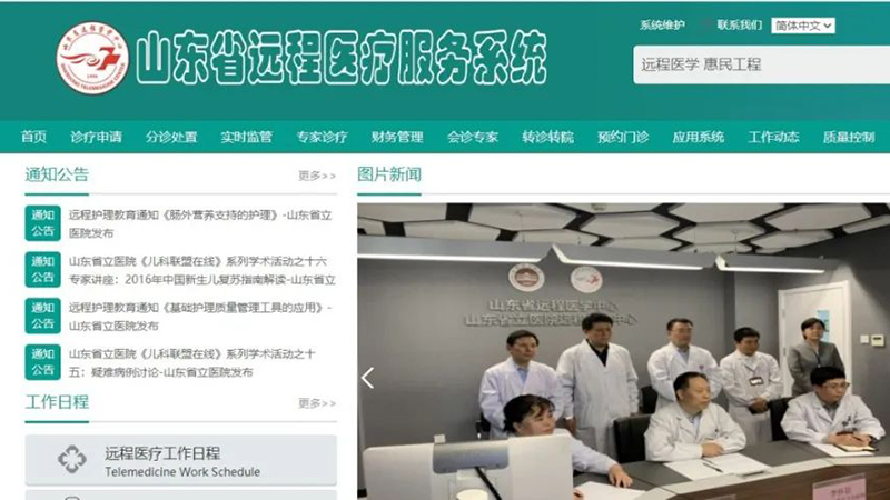 医院通过挂靠在医院的山东省远程医学中心,搭建以省立医院为中心、医联体各成员单位为分中心,覆盖社区卫生服务中心和乡镇卫生院诊室的分级诊疗服务网络,对医联体单位进行指导,让患者放心下转,留出更多空间接诊危重患者。截至目前,通过山东省远程中心进行重症肺炎多学科会诊、远程会诊、远程查房、远程影像诊断、远程培训等2000余人次,极大地提高了医联体医院的救治水平,也让群众放心的在当地治疗,避免了医疗挤兑。
