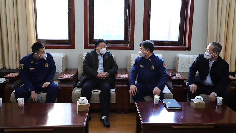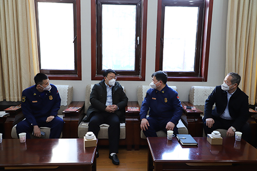 1月9日下午,槐荫区消防救援大队大队长付叶飞,政治教导员盖泽,副大队长钊岩,工程师孙建军、谢易晋一行五人,来我院就加强消防安全工作座谈交流,现场检查指导医院消防安全工作。医院党委书记孟冬,党委委员、副院长张悦祯及保卫部相关人员参加座谈交流。
