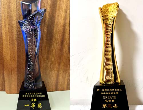 比赛前夕,由中国胃肠肿瘤外科联盟主办、《中国实用外科杂志》提供学术支持的“第一届胃外科精英团队临床技能邀请赛(GREATE)”全国总决赛在北京成功举办。由我院胃肠外科靖昌庆主任担任领队,禚洪庆、张继准、王铸作为队员的青年医师团队历经山东赛区小组赛和区域半决赛后,成功晋级全国总决赛。GREATE比赛共分为形象展示、指南共识、视频解读、厚积薄发、手术视频、谁与争锋6个环节。三位选手在随机抽题环节沉着审题,团结协作,对所有题目给予了充分解答。团队最终荣获第一届GREATE全国总决赛第三名。省立医院是全国唯一一家胃外科和结直肠外科两项比赛均进入全国总决赛的医院,充分体现了医院胃肠外科的综合实力。