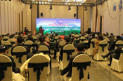 仪式上,蒙阴县中医医院院长秦承安汇报了医院发展情况,省立医院对外合作与医务社工处处长宋开兰代表医院与秦承安进行了医联体协议签约。肖伟、苗运全共同为两家合作单位进行了揭牌。