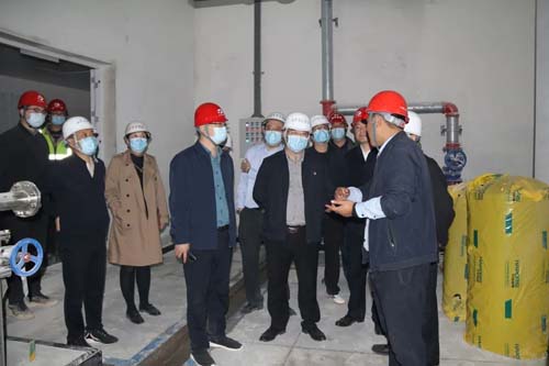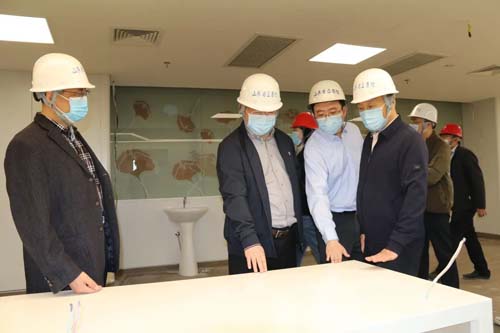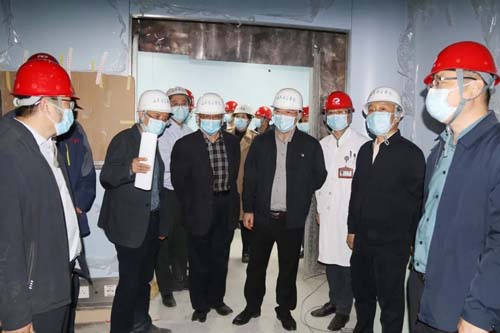 孟冬一行到施工现场查看了血液移植仓、标准病房、手术中心、一楼大厅、冷热水泵房、空调机房、屋顶停机坪及室外景观绿化等区域的施工进展情况,听取了项目施工质量、安全及竣工验收计划等情况的汇报。