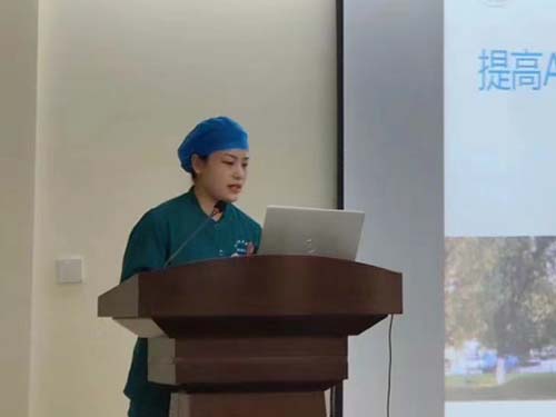 护理质量促进组进行了相关知识培训。组长李敏敏护士长分享了《如何开展质量改善相关科研》,从质量改进相关文献近年发表情况,循证质量改进(EPIQ)概述等方面,介绍了科室医护合作,共同推进临床研究开展的经验。王新护士长结合科室开展的成功案例,梳理了护理质量改善项目开展的流程,从主题选定、计划制定、对策实施、效果确认、总结改进等方面给予详细讲解。手术室马丽分享了《缩短达芬奇机器人接台手术术前准备时间》优秀案例的成功经验。