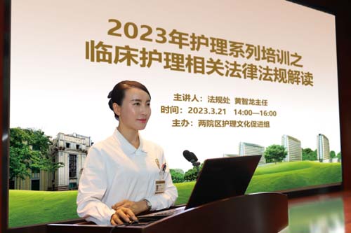 3月31日,山东第一医科大学附属省立医院(山东省立医院)两院区护理文化促进组举办“临床护理相关法律法规解读”培训。培训主会场在中心院区妇儿楼六楼,东院区诚和楼四楼会议室同步直播。