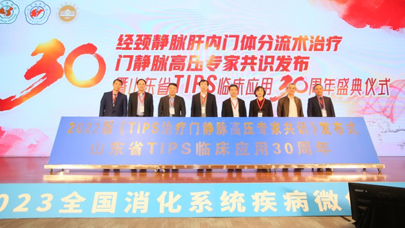 会上举行《2022年经颈静脉肝内门体分流术治疗门静脉高压专家共识》发布及山东省TIPS临床应用30周年盛典仪式。徐克教授、孟冬书记、张澍田教授、唐承薇教授、任红教授、杨爱明教授、谢渭芬教授、张春清教授共同启动。