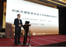 山东省立医院成立医务社会工作办公室已近8年的时间,不断总结和反思,服务与工作开展已初具模式,并在国内医务社会工作领域处于比较前沿位置,因此经常受邀参加各种全国性和地方性研讨会和培训会,分享经验,并推广医院志愿服务与医务社会工作。每年都以理事单位的身份参加中国社会工作协会和中国社会工作教育协会、中国医院协会志愿服务暨医务社会工作专委会的年会。2012年4月参加并主持第一届中美医务社会社会工作论坛,11月份,山东省立医院参加卫生部在西宁召开的“先诊疗,后结算”及医院社会工作会议,秦成勇院长就山东省立医院社会工作开展的经验做代表发言。在中国社会工作协会在山东省立医院举办了“医务社工调研座谈会”上,卫生与国家计划生育委员会医政医管局王曼莉处长聆听了山东省立医院医务社会工作的汇报,并对所开展的活动表示震惊,并表示“医务社工让整个医疗服务更加饱满,更加有温度。”为促进业界沟通交流与合作,山东省立医院主动搭建平台,2013年、2014年、2015年连续三年主办全国医务社会工作研讨会,推动国内医院志愿服务与医务社会工作发展。国务院副总理刘延东在山东省立医院视察期间,对医院承担公益性、开展惠民工作和志愿者工作给与了高度评价。而中国社会工作协会秘书长赵蓬奇指出山东省立医院开展的医务社工服务是领导看得见,病人能接受,社会也认可的具体举措。