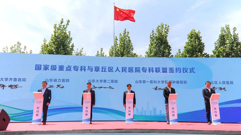 5月8日,省卫生健康委在济南市章丘区开展了全省卫生健康系统解决群众急难愁盼问题百日攻坚行动暨“四送四进四提升”健康促进行动现场宣传体验活动。山东第一医科大学附属省立医院(山东省立医院)组建专家团队进行现场义诊。医院党委委员、副院长王默参加国家级重点专科与章丘人民医院专科联盟签约仪式。