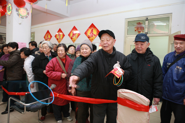 为了活跃老同志们文化生活,离退休干部处全体工作人员群策群力,团结协作,连续七年坚持每年开展一次麻将、乒乓球、台球、象棋等丰富多彩的比赛活动,深受老同志们的欢迎。图为老干部们在我院2010年2月迎新春趣味游园活动中参加套圈比赛活动。