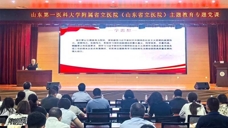 为深入开展学习贯彻习近平新时代中国特色社会主义思想主题教育,6月16日,山东第一医科大学附属省立医院(山东省立医院)总务党总支举行主题教育专题党课。省立医院党委委员、副院长张悦祯,与党总支“一对一结对子”的省委党校马克思主义学院副教授张雷刚分别讲授党课。总务党总支全体党员参加学习。