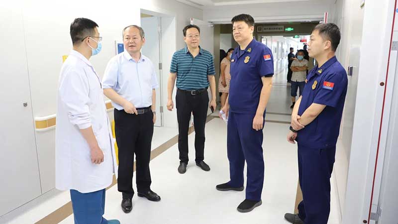6月29日下午,济南市消防救援支队法制处处长张国栋、高级工程师王志远、高级工程师任汉信、参谋张慧一行四人来院开展消防安全专项检查,医院党委委员、副院长张悦祯,保卫部相关负责同志介绍有关情况。
