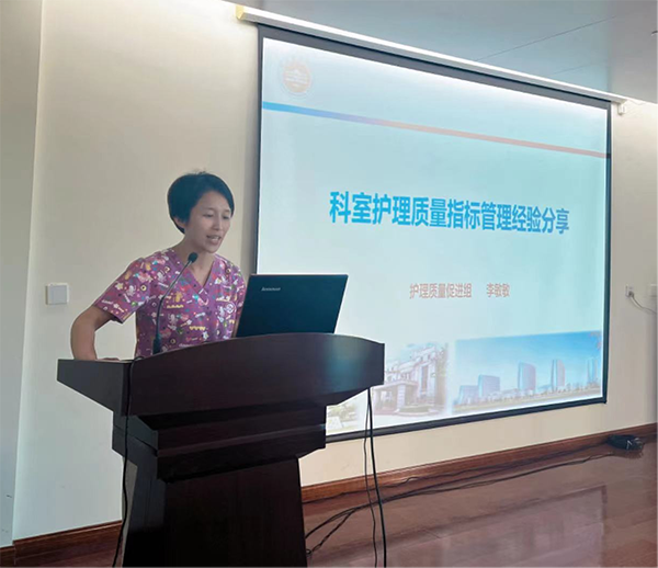 质量促进组成员王菲对上半年开展的护理质量专项检查工作进行汇报与反馈,从护理文书、分级护理落实、优质护理服务计划落实、专科指标制定4个方面存在的共性问题、重点问题、临床困惑问题进行了细致地分析与答疑。李敏敏解析了科室护理质量指标的构成、依据、数据的来源及收集,分享了通过使用质量指标数据进行管理的经验,将数据和指标作为质量评价的量化工具,及时发现质量管理中的缺陷和不足,驱动质量改善,提升护理品质。