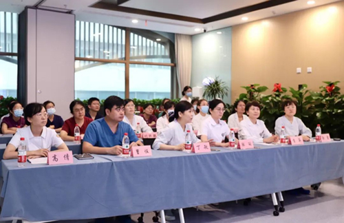 在护理部统筹安排下,重症医学科科护士长丁敏主持会诊,护理心理组组长、骨关节科护士长李萍,静脉血栓护理组组长、血管外科护士长张丽,造口伤口失禁护理组、护理专科门诊护士长高倩,急危重症护理组组长、重症医学二科护士长白雪,急危重症护理组副组长、重症医学三科护士长曹恒,重症营养护理组组长、重症医学一科副护士长刘聪聪,康复医学科技师杨晓文,康复医学科护士公培培,呼吸治疗师徐琳静、王启等相关人员参加会诊。在院学习的2023年第二期国家级重症专科护士现场观摩了会诊过程。