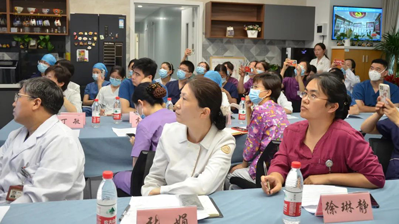 重症医学科二病区护士长白雪第一时间申请多专科护理会诊,经护理部统筹安排,中心院区急危重症护理组组织相关专家参与了此次会诊。会诊由急危重症护理组组长、重症医学科二病区护士长白雪主持,重症医学科二病区副主任医师郄国强,重症医学科科护士长丁敏,急危重症护理组副组长、重症医学科三病区护士长曹恒,重症医学科三病区副护士长陈雪,管道护理组组长、全科医学科护士长张娟,重症循环亚专科组组长、PICU副护士长樊桂美,呼吸治疗师徐琳静、王启等参加会诊。此外,在院学习的2023年第二期国家级重症专科护士及国际造口治疗师现场观摩此次会诊。