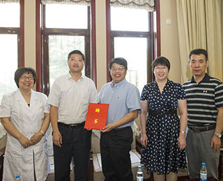 7月25日上午,我院聘请美国辛辛那提儿童医院黄涛生教授为客座教授的聘任会在仁和楼接待室举行。院长、党委副书记秦成勇, 人力资源部主任孙卫华,儿童医学中心副主任、儿内科主任韩波参加会议。