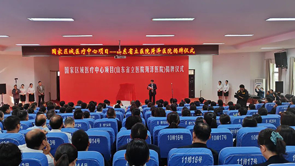 10月11日,国家区域医疗中心项目——山东省立医院菏泽医院揭牌仪式在菏泽举行。菏泽市委常委、副市长王昌华,山东第一医科大学附属省立医院(山东省立医院)党委书记孟冬参加并致辞,共同为山东省立医院菏泽医院揭牌。省发展改革委二级巡视员王艳莉,省卫生健康委党组成员、副主任徐民,山东第一医科大学(山东省医学科学院)党委副书记吴向东,省立医院党委委员、副院长王默等参加揭牌仪式。