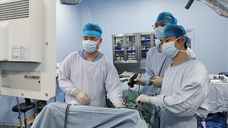 12月15日,患儿手术如期进行。平稳麻醉后,在王洲主任医师指导下,由陈钢副主任医师为主刀,尚斌主治医师为助手,进行约3cm切口的纯单孔胸腔镜微创手术切除异位甲状旁腺肿瘤。术中医师仔细探查、精准操作、减小创伤,在麻醉手术科、护理团队的精心配合下,约30分钟便将肿瘤完整切除,肿瘤的体积约3.0*2.8*2.5cm。手术过程顺利。