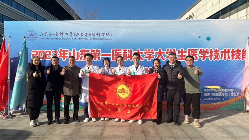 2024年1月15日,2023年度山东第一医科大学大学生医学技术技能大赛临床医学专业竞赛在济南主校区举行,来自13所附属医院和教学医院的52名选手参加比赛,经过激烈角逐,我院代表队获得团体一等奖,7人次单项奖。