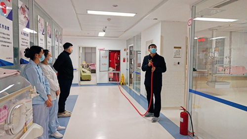 通过此次联合演练,新生儿科医务人员进一步熟练掌握了消防栓、手提式灭火器等消防救援设备的使用,熟知在发生火情火警时的电话上报原则及注意事项,掌握了疏散逃生相关知识,切实加强了消防应急疏散能力。