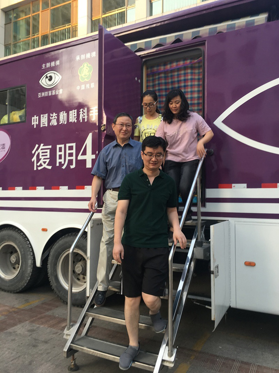 6月26日下午,随着最后一例白内障患者被搀扶走下“复明四号”手术车,由我院眼科王利华主任医师(眼科党支部书记)、王琪副主任医师(共产党员)、倪寿翔主治医师、刘宝玉主管护师、手术室孙琪护士(共产党员)组成的“复明四号”小分队,圆满完成了2016年贫困白内障复明项目第一站的任务,为沂源革命老区198例患者免费实施了白内障复明手术。