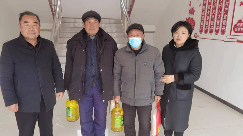 年关将至,为进一步密切党群关系,加强对困难人群的关爱服务,我院派驻东明县刘楼镇省派“第一书记”受医院党委委托,对帮扶的春亭村、邓王庄村、宋庄村开展春节走访慰问活动。帮扶村第一书记踏着瑞雪到户对老党员、五保户、低保户、百岁老人、残疾人、大病群众等群体进行慰问,向他们送去米、面、油等生活必需品,并向他们致以诚挚问候及新春祝福。