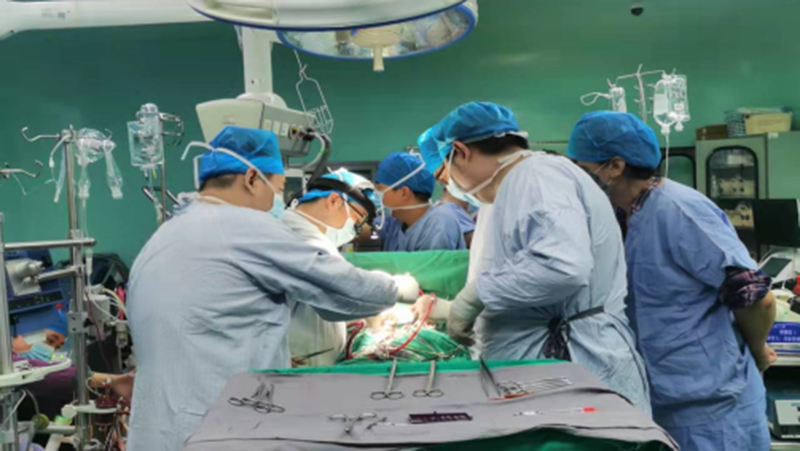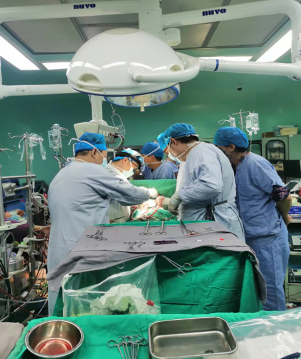张海洲主任医师立即联系组织多学科会诊,联合产科、麻醉手术科、新生儿科等团队开展救治。多学科会诊建议立即在全麻下行心脏手术与剖宫产手术。术前患者出现呼吸循环衰竭征象,极度呼吸困难,全身紫绀,经皮血氧饱和度不足80%,血压进行性下降至85/45mmHg,尿少并代谢性酸中毒,胎动明显减弱,随时有出现心源性休克或心跳呼吸骤停的危险,危及产妇及患儿生命。心外科、产科、麻醉手术科、心脏超声科等科室组成的救治小组通力协作,立刻展开抢救,麻醉手术科邢翠燕主任医师对患者采取半卧位麻醉成功后,产科周宇副主任医师成功实施子宫下段剖宫产术+双侧子宫动脉上行支结扎术,心外科张海洲主任医师团队成功实施全麻体外循环下左房占位切除+三尖瓣成形术。整个手术过程中由心脏超声科朱梅主任医师和牟慧珺副主任医师为患者实施经食道心脏超声检测为手术保驾护航。手术顺利完成,患者母子平安。术后患者转回心外科重症监护室,在经过4日精心治疗后恢复良好,转回普通病房并在术后2周顺利出院。