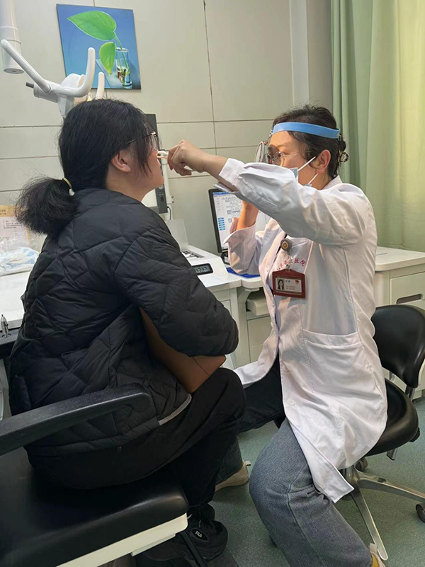 耳鼻咽喉科时蕾副主任医师诊查患者