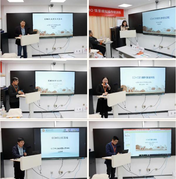 重症医学科主任医师张继承,副主任医师杨洪娜、郄国强、张静、王启志、王鹏、陈曼,分别从ECMO病理生理学、ECMO与呼吸治疗、ECMO与抗凝、ECMO镇静镇痛、ECMO上机策略、ECMO撤机策略、ECMO期间感染防控等7个方面详细讲述了ECMO管理思路及要点,现场学术氛围浓烈,学员们深入了解了ECMO相关知识。