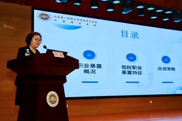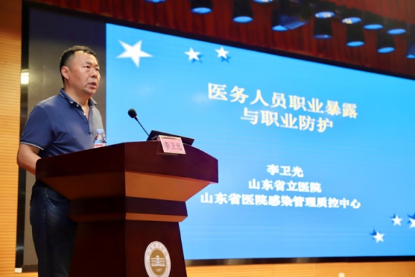 李卫光副主任以《医务人员职业暴露与职业防护》为题进行专题授课,依据相关法律法规、流行病学特征,结合山东省职业暴露情况,用典型的案例、科学的方法梳理了职业暴露与防护领域的相关问题。徐力副主任医师以《呼吸道感染的早期预防和管理》为题,从全球传染病防控形势出发,介绍了呼吸道传染病的防控和管理。职业防护护理组组长、小儿泌尿外科邓钰护士长以《职业防护·筑梦护航》为题,介绍了我院职业暴露特征及改进策略。职业防护护理组副组长郭玲从背景、风险因素、防护及发生后的处理四方面对《中国针刺伤防护专家共识》进行了解读。