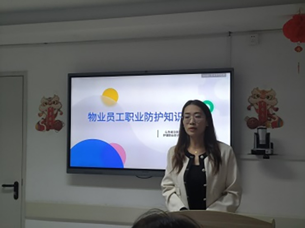 4月25日,职业防护护理组联合医院物业管理办公室为物业人员进行了专项培训,小组成员宋璐采用PPT讲解了常见职业伤害、标准预防、手卫生、消毒隔离及医疗废物规范处理等方面的知识,紧贴物业人员日常工作,倡导“加强防护,保障安全,从我做起”的健康工作方式,养成健康良好的工作方式和习惯。