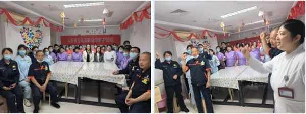 会议期间,职业防护护理组组员带领大家做快乐洗手操,现场气氛非常活跃,大家一起快乐洗手,传递了“将感染控制在手中”的温情与理念。