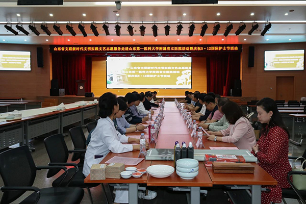 在第113个5·12国际护士节来临之际,5月11日下午,由山东省文联主办,省书协、省美协、山东第一医科大学附属省立医院(山东省立医院)承办的“与人民同行”山东省文联新时代文明实践文艺志愿服务暨庆祝5·12国际护士节活动在省立医院中心院区举行。山东省文联组织书画家向医护工作者送去节日的问候和祝福。省文联党组成员、副主席马述兴,省文联办公室主任马宗前,省立医院党委副书记马成顺,省立医院党委委员、纪委书记张峰,中国书协理事、省书协主席王瑞,中国书协理事、省书协副主席靳永,中国美协民族艺委会委员、省美协副主席魏百勇,省书协、省美协书画家,省立医院护理部科护士长、护士代表及宣传处相关负责人员等参加活动。